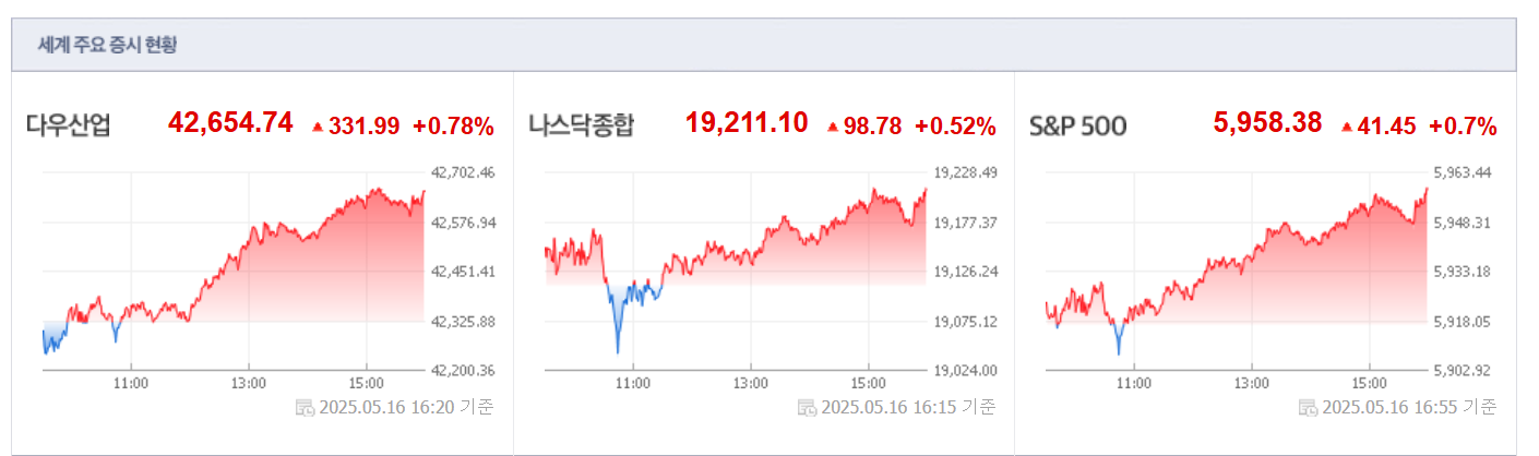● 주요 지수 마감 현황 (2025년 5월 16일 기준)