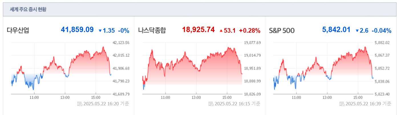 ● 주요 지수 마감 현황 (2025년 5월 22일 기준)