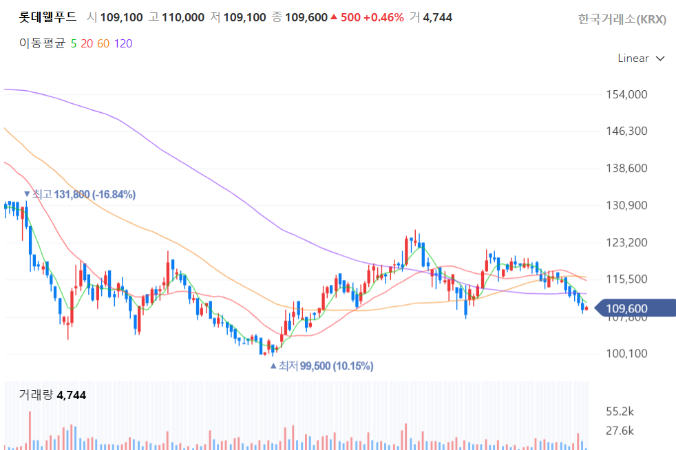 반면, 내수 시장에 집중한 롯데웰푸드와 오뚜기는 실적 부진으로 주가가 하락하고 있습니다.