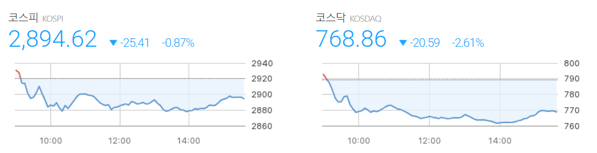 - 종가: 2,894.62P (전일대비 -25.41P, -0.87%)
