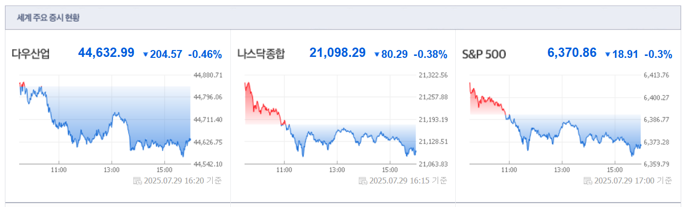 ● 주요 지수 마감 현황 (미국 기준, 7/29/2025)