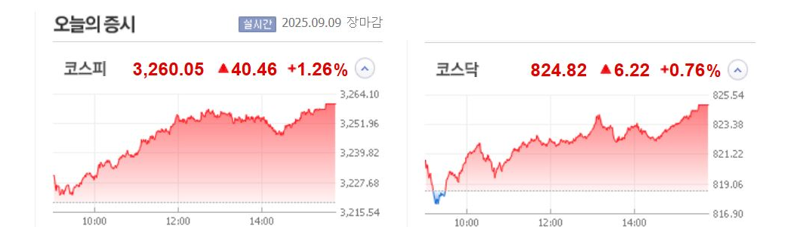● 주식시장 요약: 2025년 09월 09일 - 코스피·코스닥 마감