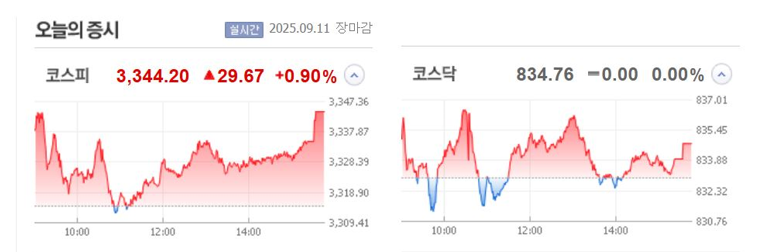 ● 주식시장 요약: 2025년 09월 11일 코스피·코스닥 마감