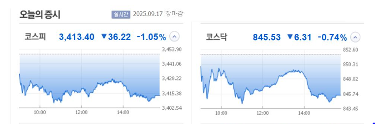 증시 요약 : 2025년 9월 17일 코스피·코스닥 마감