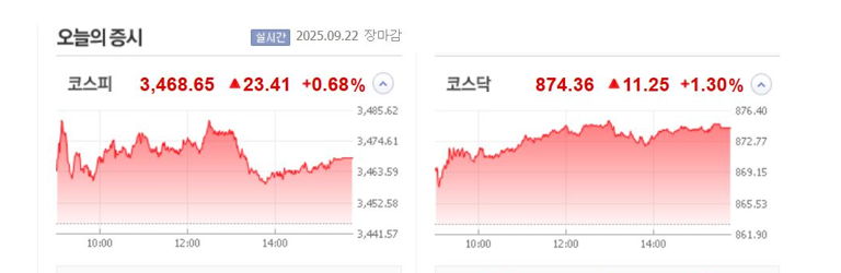 ● 주식시장 요약: 2025년 9월 22일 - 코스피·코스닥 마감