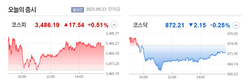 ● 주식시장 요약: 2025년 9월 23일 - 코스피·코스닥 마감