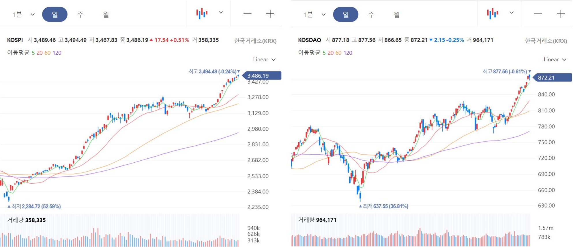 - 종가: 3,486.19 (+17.54P, +0.51%)