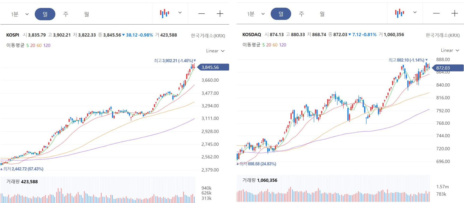 - 종가: 3,845.56 (-0.98%)