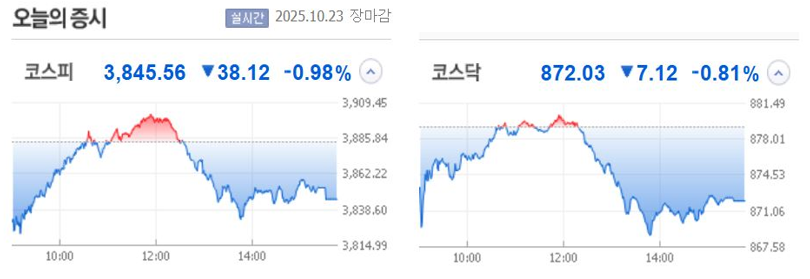 ● 주식시장 요약: 2025년 10월 23일 - 코스피·코스닥 마감