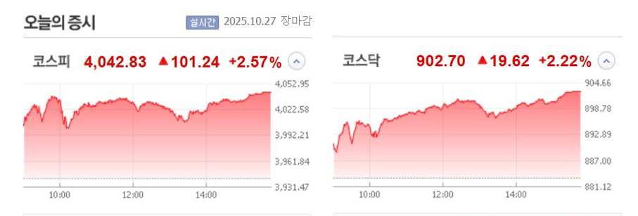 ● 주식시장 요약: 2025년 10월 27일 - 코스피·코스닥 마감