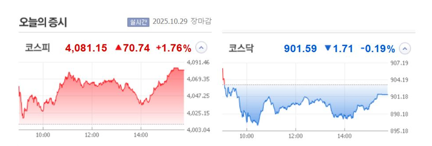 증시 요약 : 2025년 10월 29일 코스피·코스닥 마감