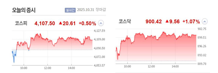 증시 요약 : 2025년 10월 31일 코스피·코스닥 마감