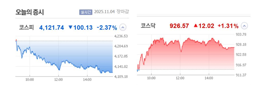● 주식시장 요약: 2025년 11월 4일 - 코스피·코스닥 마감