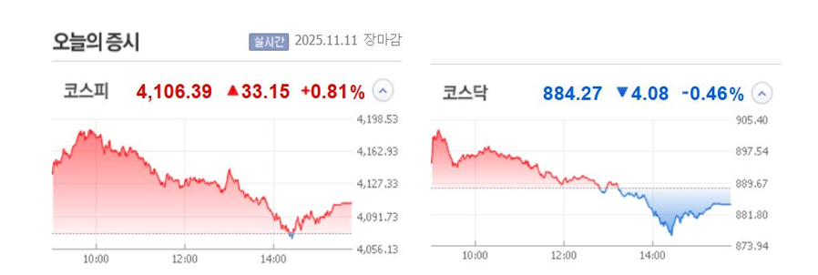 ● 주식시장 요약: 2025년 11월 11일 코스피·코스닥 마감