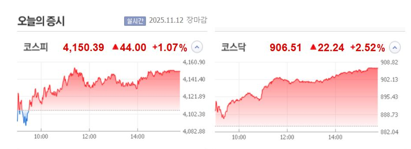 ● 주식시장 요약: 2025년 11월 12일 코스피·코스닥 마감