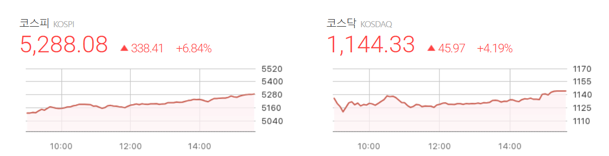 - 최근 5년여 만에 기록적인 일간 상승률